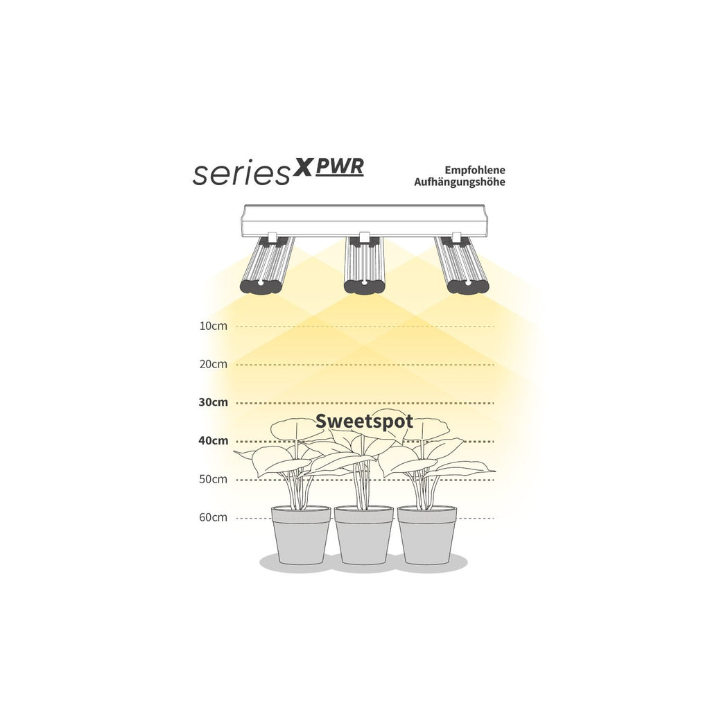 Die Modelle der seriesX PWR orientieren sich an den gängigen quadratischen Zeltgrößen und den Lichtleistungen herkömmlicher Natriumdampflampen. So finden Sie mühelos die passende Variante und sorgen für die optimale Lichtversorgung Ihrer Pflanzen.