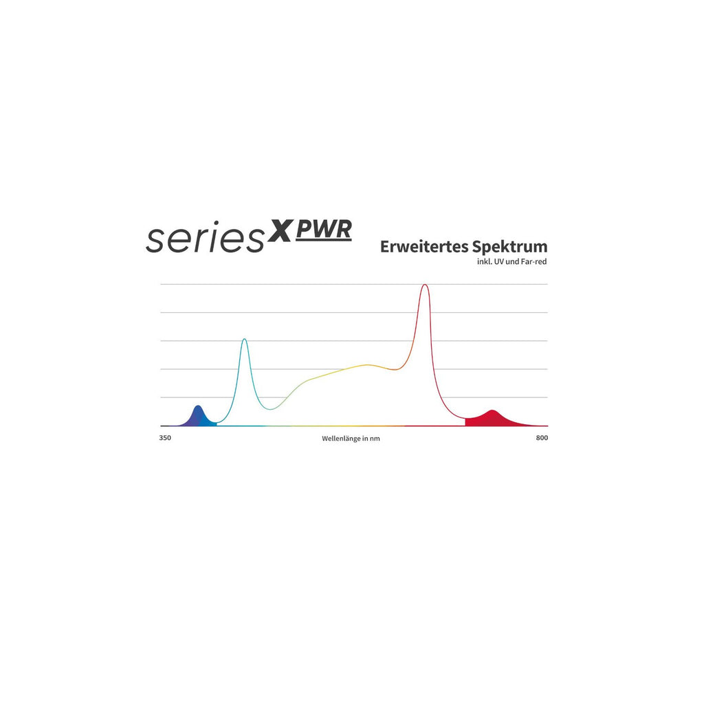 Die Greenception LED seriesX PWR setzt neue Maßstäbe in Sachen Pflanzenwachstum und Ertrag. Diese fortschrittliche Pflanzenleuchte bietet ein erweitertes Vollspektrum von UV-Licht bis Far-Red (365 bis 780 nm), um sicherzustellen, dass Ihre Pflanzen das ideale Licht für jede Phase ihres Lebenszyklus erhalten. Doch das ist nur der Anfang.