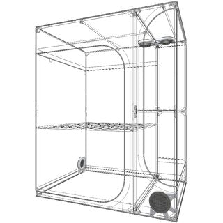 160x120x198, 95% Reflection, licht- & wasserdicht, 2x Frontdoor, 2x Reardoor, Absaugöffnung: 305mm, diverse Zugriffs- & Befestigungsmöglichkeiten 2 in 1 Station für Blüte und Wachstum